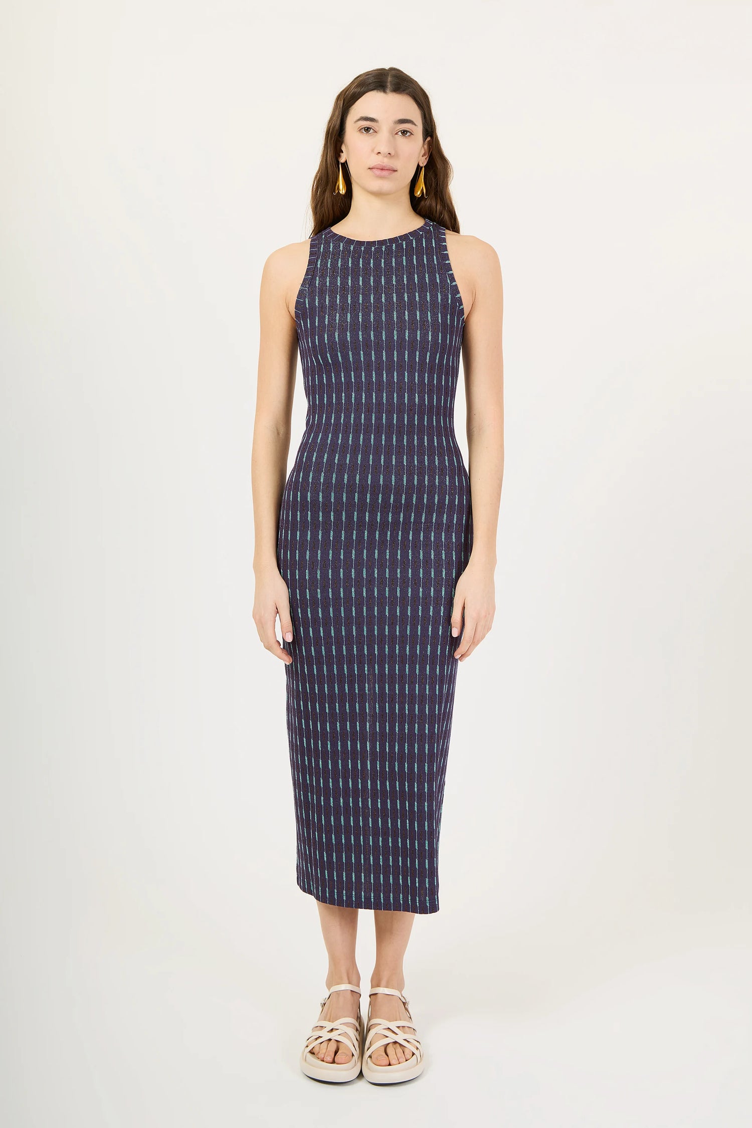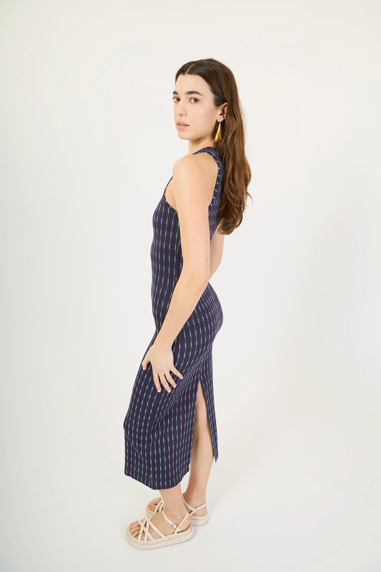Abito lungo aderente a canotta con spacco sul centro dietro.